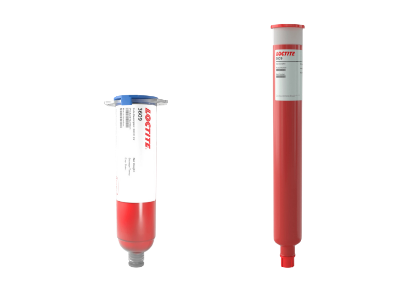 | LOCTITE® 3611 suited where very fast cure is required on high speed SMT lines. The very low moisture absorption allows longer exposure to humidity in open baths, without affecting dispensability or causing void formation in the cured adhesive. | 300ml Loctite Chipbonder Epoxy Adhesive Stencil Print - Red. | ||