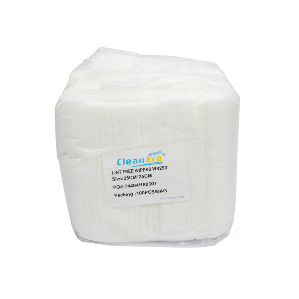 WR-250 Cleanera Non Woven Wiper is made from 100% rayon, this wiper is smooth, highly absorbent, and durable, making it suitable for general cleaning and wiping tasks. It offers low lint and low static wiping, with no chemical additives used in its production. Manufactured and packed in a cleanroom environment, the wiper features solvent-safe, double-bag cleanroom packaging to maintain its purity. Its high sorption capacity makes it ideal for spill control and solution cleaning applications. The wiper is designed for a range of uses, including spill control, wiping and cleaning surfaces, equipment, and parts, as well as applying or removing adhesives, lubricants, residues, and other solutions such as isopropyl alcohol (IPA), ethanol, acetone, and degreasers. Additionally, it can be used for holding, protecting, and drying parts, equipment, and devices.